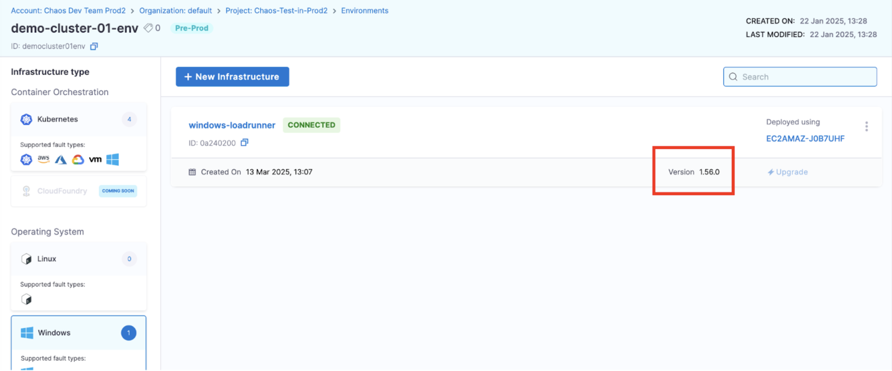 This topic describes how you can upgrade your legacy chaos infrastructure (Dedicated Kubernetes Infrastructure, Helm-based Installation, Linux, and Windows infrastructure).