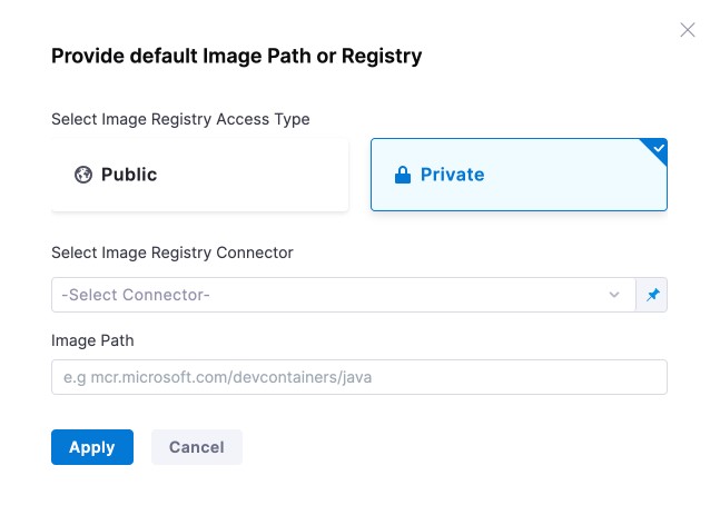 2. Private Images – Connect Harness to your Artifact Repository and configure the private Docker image. Go to Private Docker Images for more details.