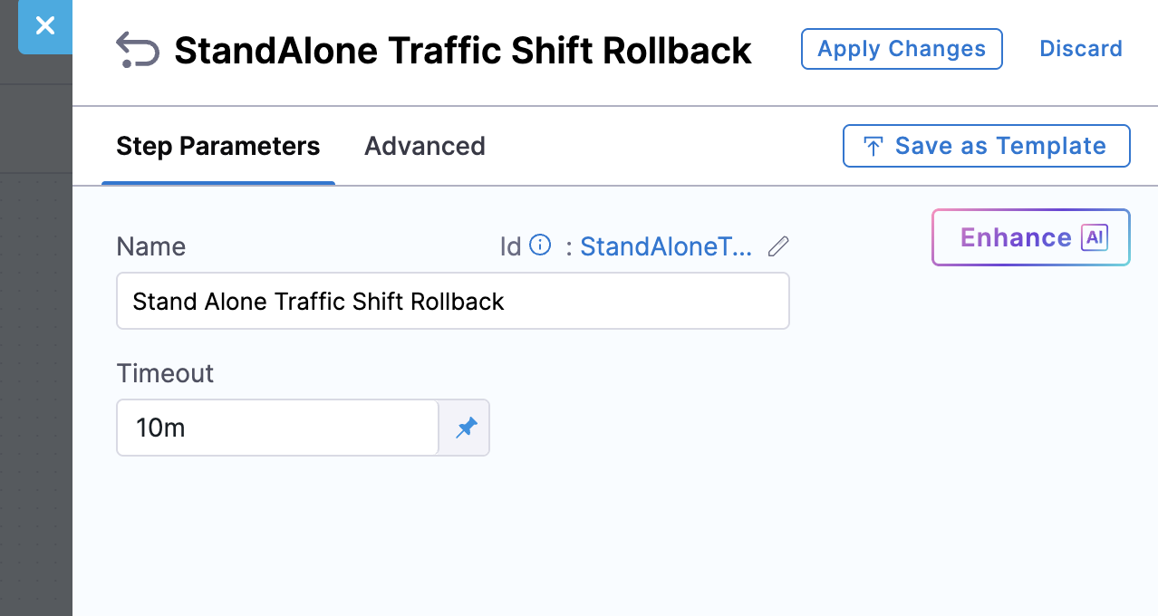- Standalone Mode: Resets the original forward configuration for all listener rules used in the stage using the Standalone Traffic Shift Rollback step.