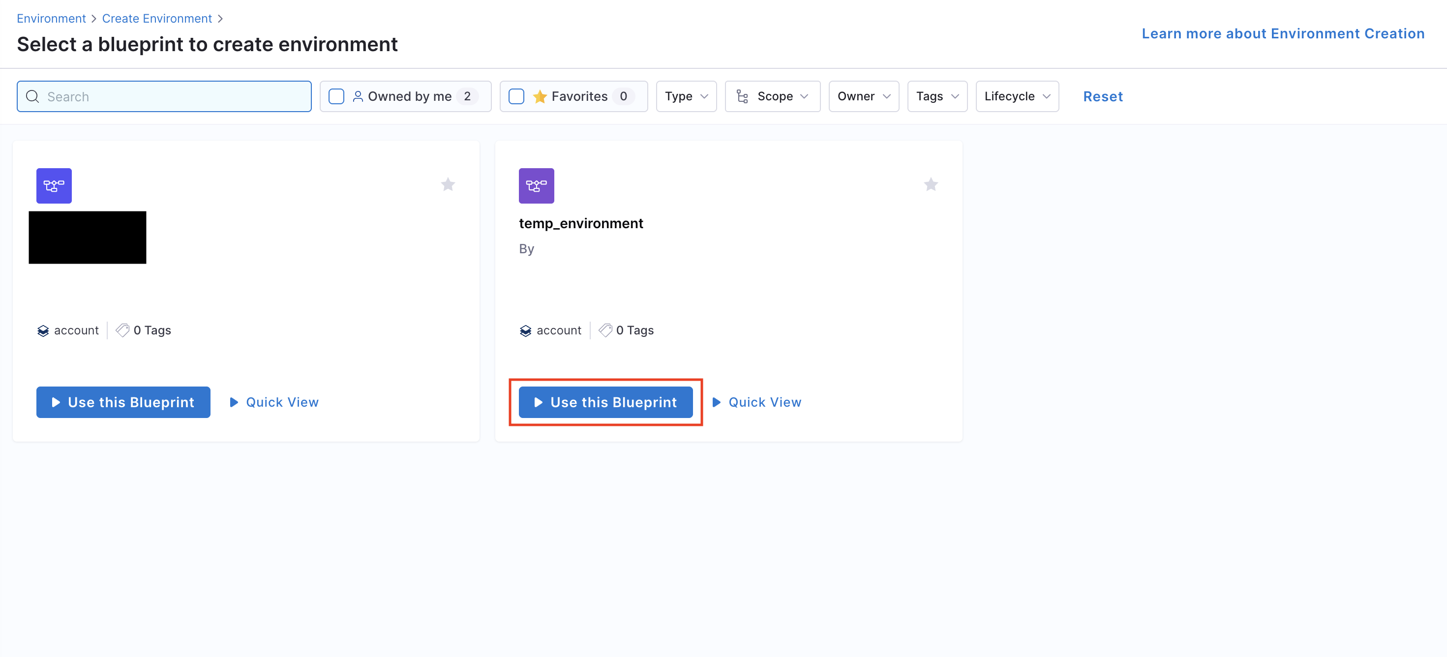 Using the Environment Blueprint we can now create and spin up an ephemeral environment.