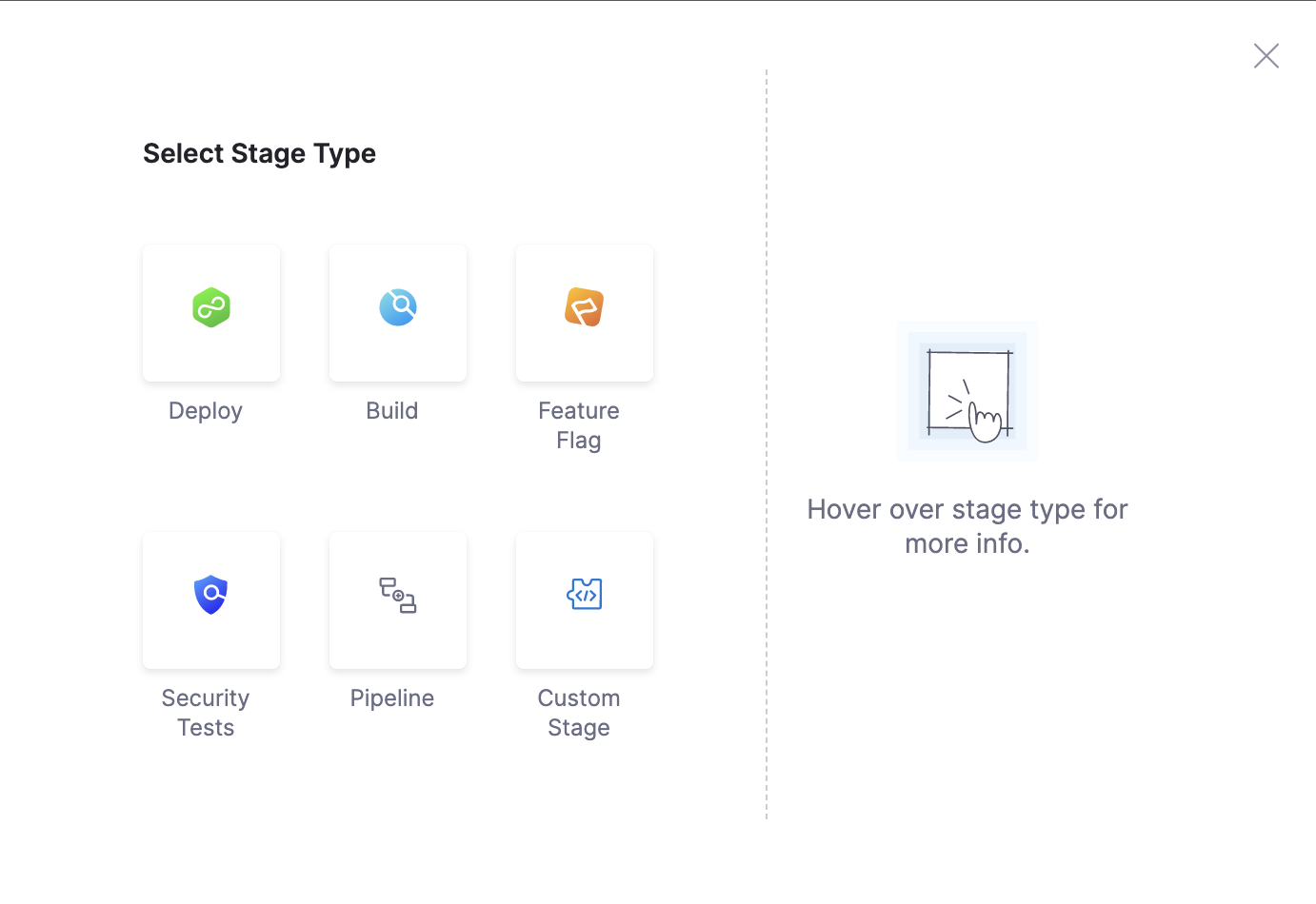 Select Deploy. The deploy stage type is a CD stage that enables you to deploy any service to your target environment.  This topic uses the Deploy stage type. You can select a different stage type. The stage type you select determines where you can reference the step group template in the pipeline. If you select Deploy as the stage type, you can reference the template in any pipeline's deploy stage. If you select Build as the stage type, you can reference the template in any pipeline's build stage.