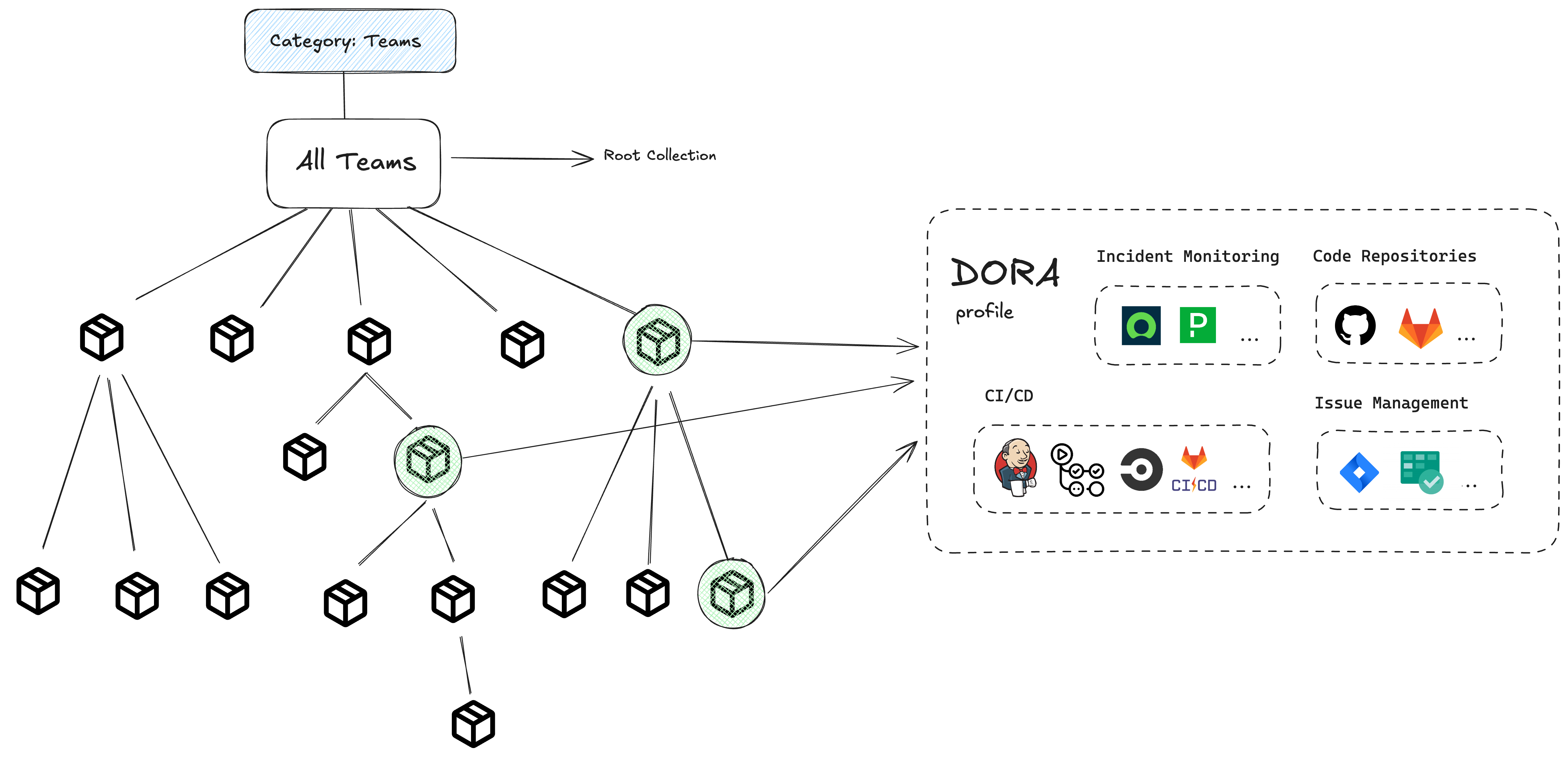 - It serves as a single source of truth for these metrics and ensures consistent measurement across tools like SCMs, CI/CD platforms, and issue management systems.