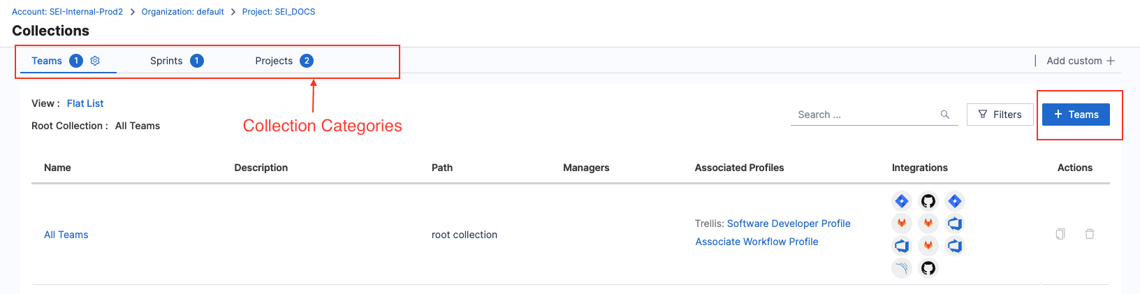 - In your Harness project, go to the SEI module, select your Project, and then select Collections.